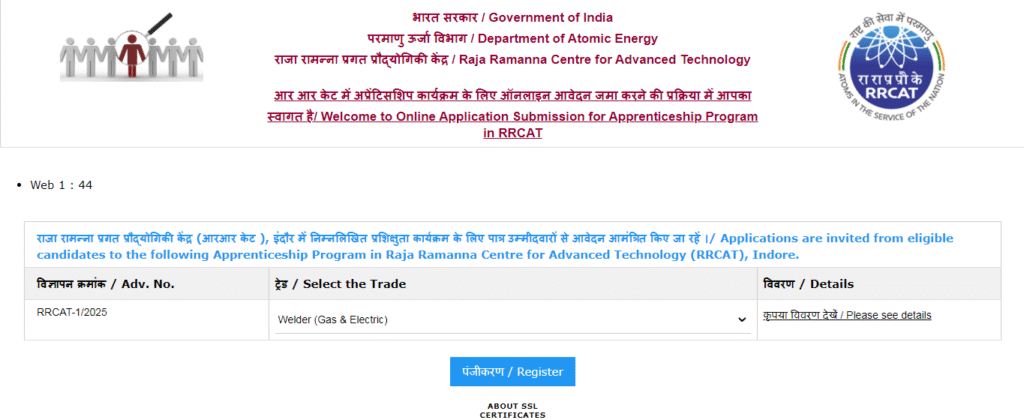 - Online application part on RRCAT apprenticeship portal.